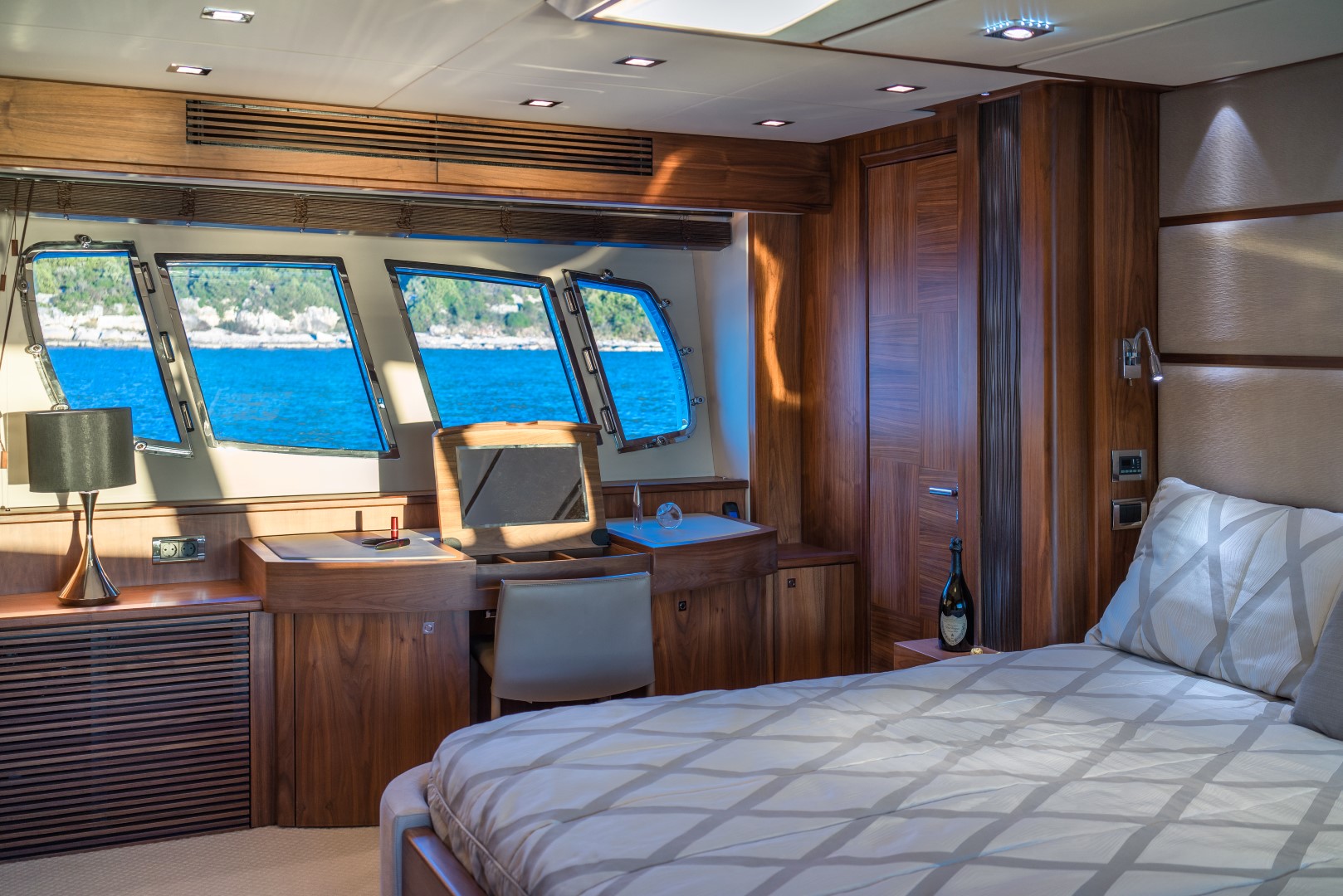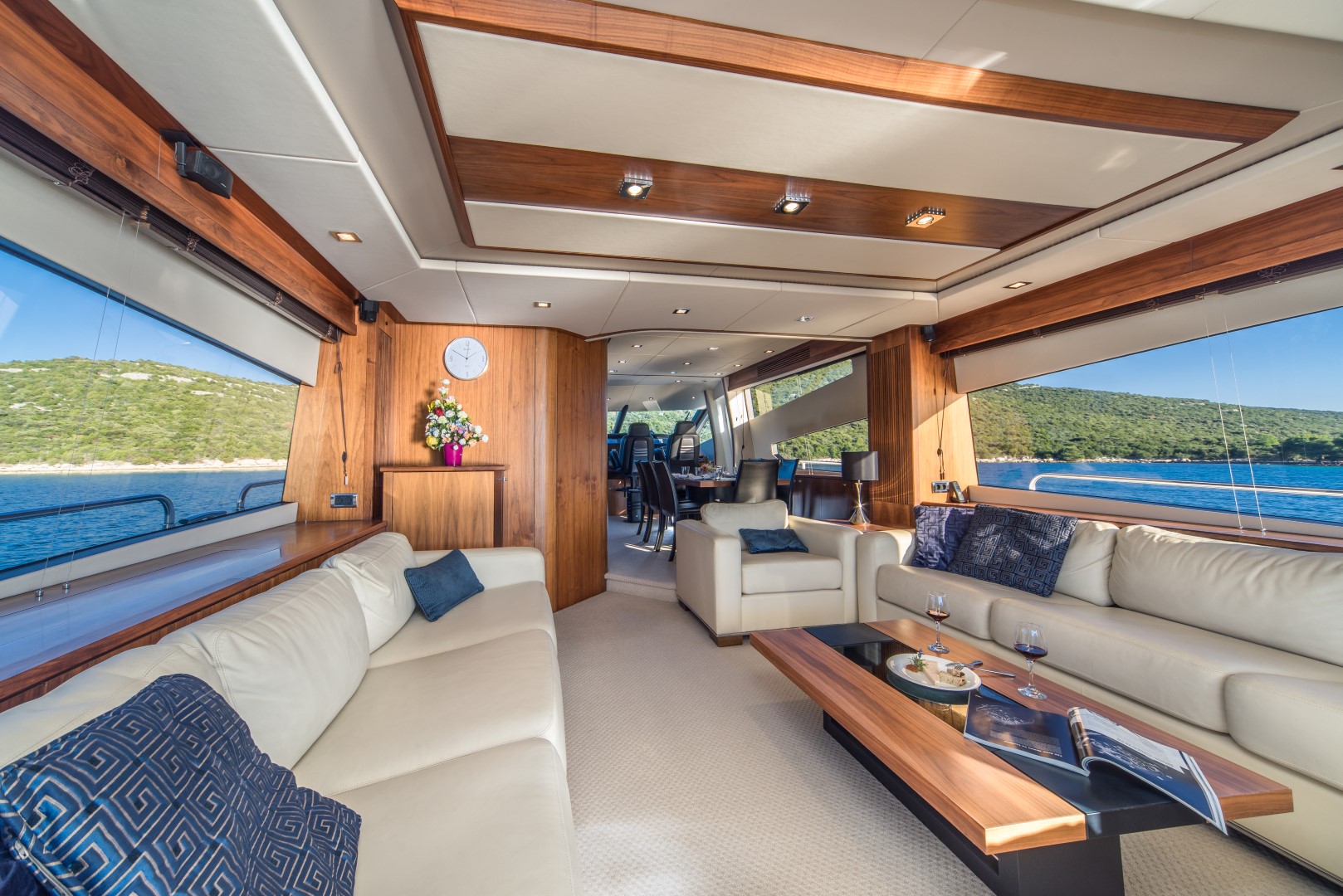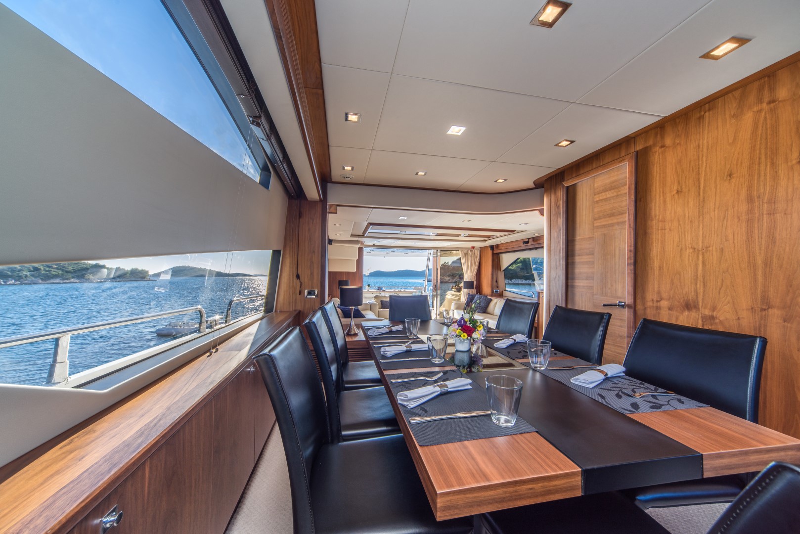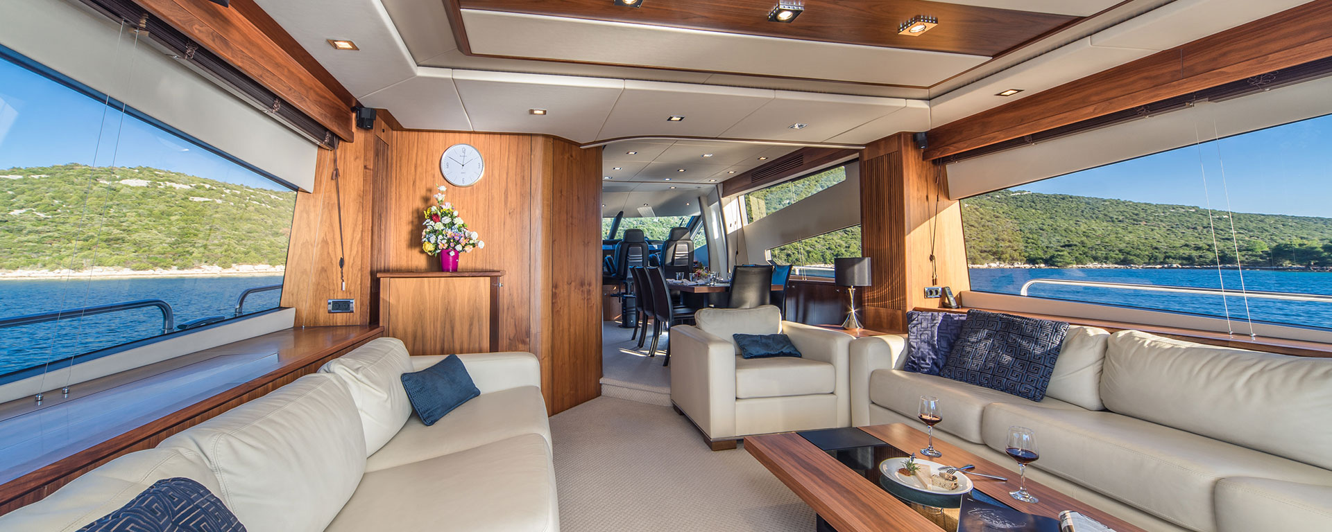 Ihre Charter-Yacht ist ausgestattet mit vier eleganten Gästekabinen, jede ensuite, einem luxuriösen und sehr geräumigen Salon sowie einem Essbereich.