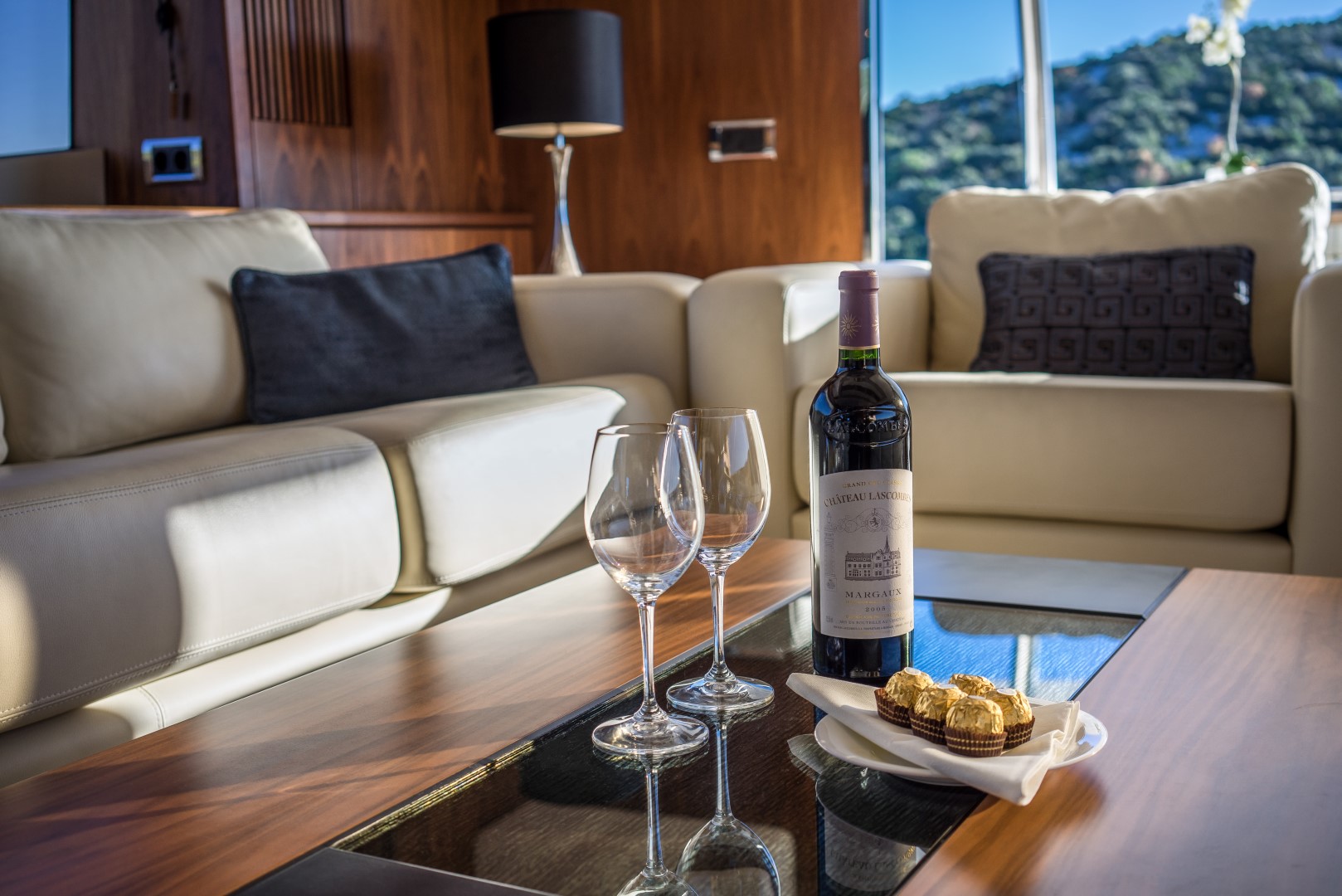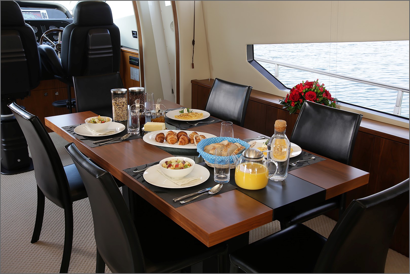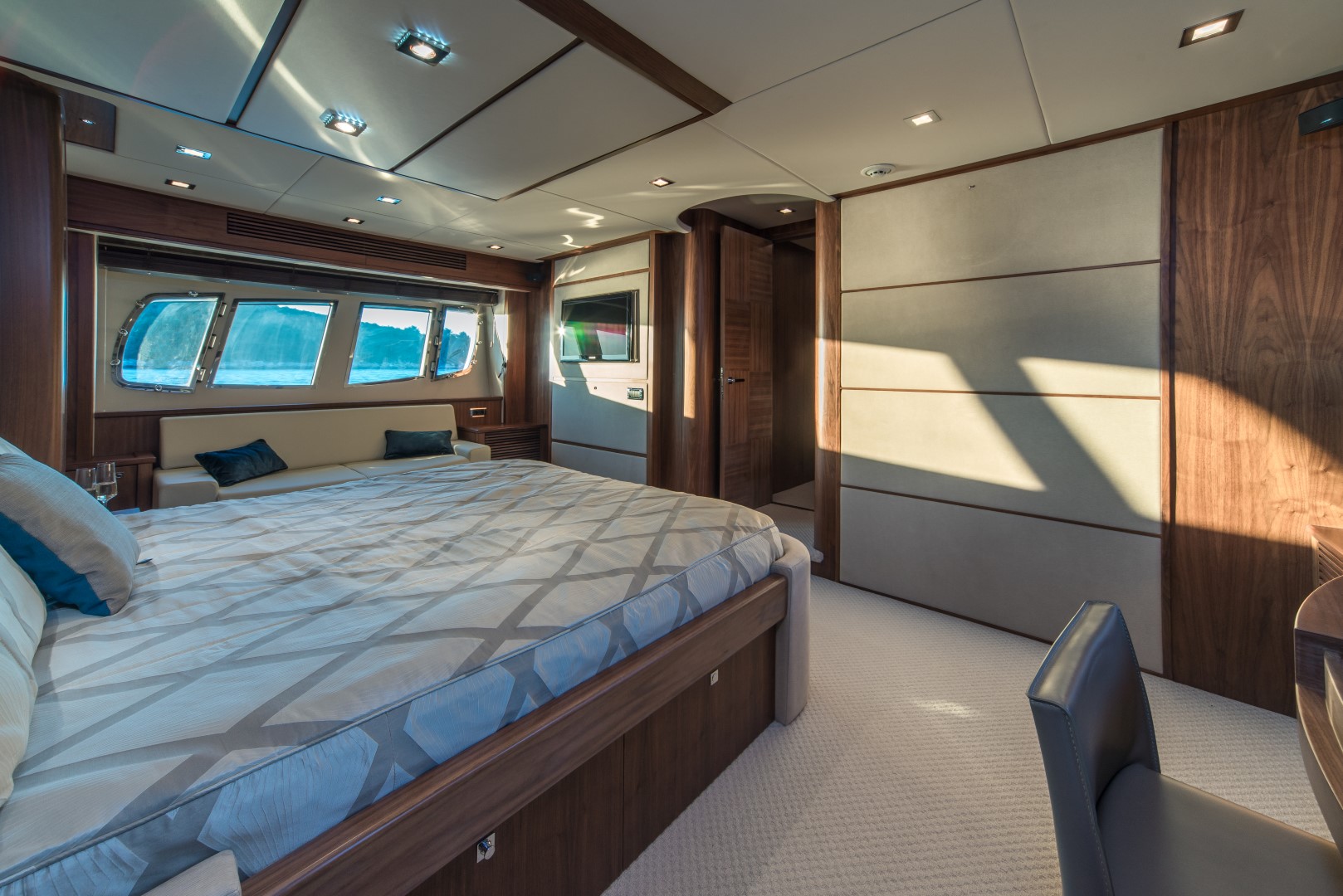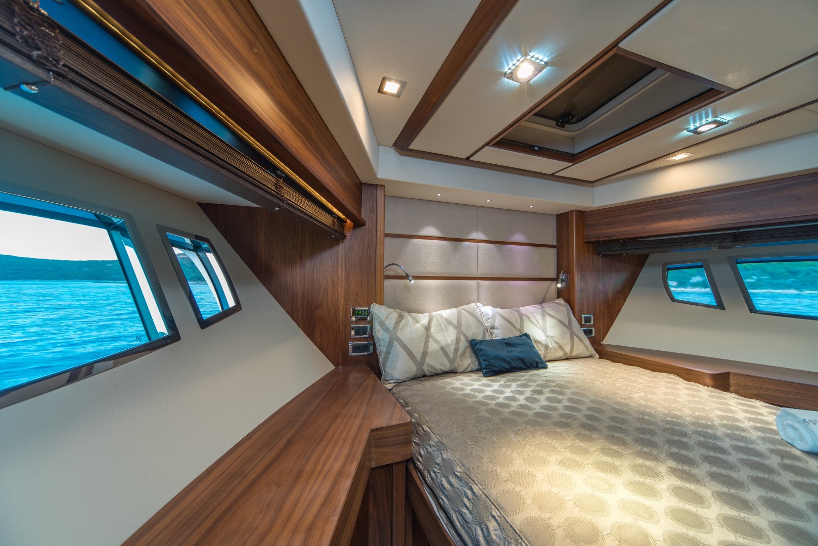 Ihre Charter-Yacht ist ausgestattet mit vier eleganten Gästekabinen, jede ensuite, einem luxuriösen und sehr geräumigen Salon sowie einem Essbereich.