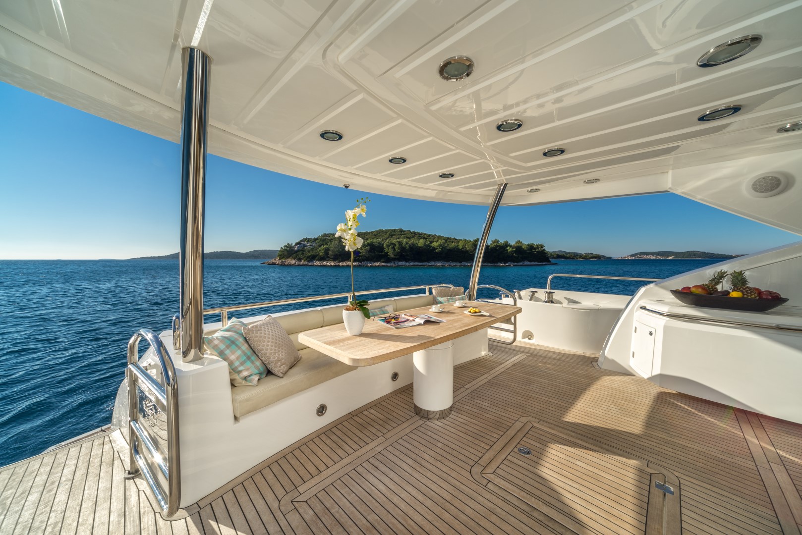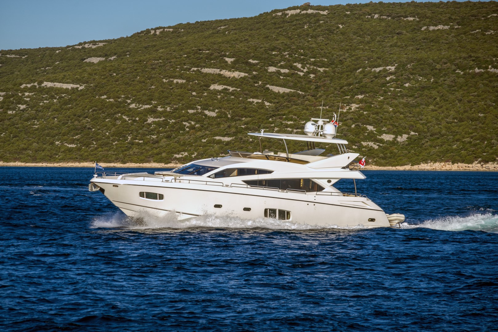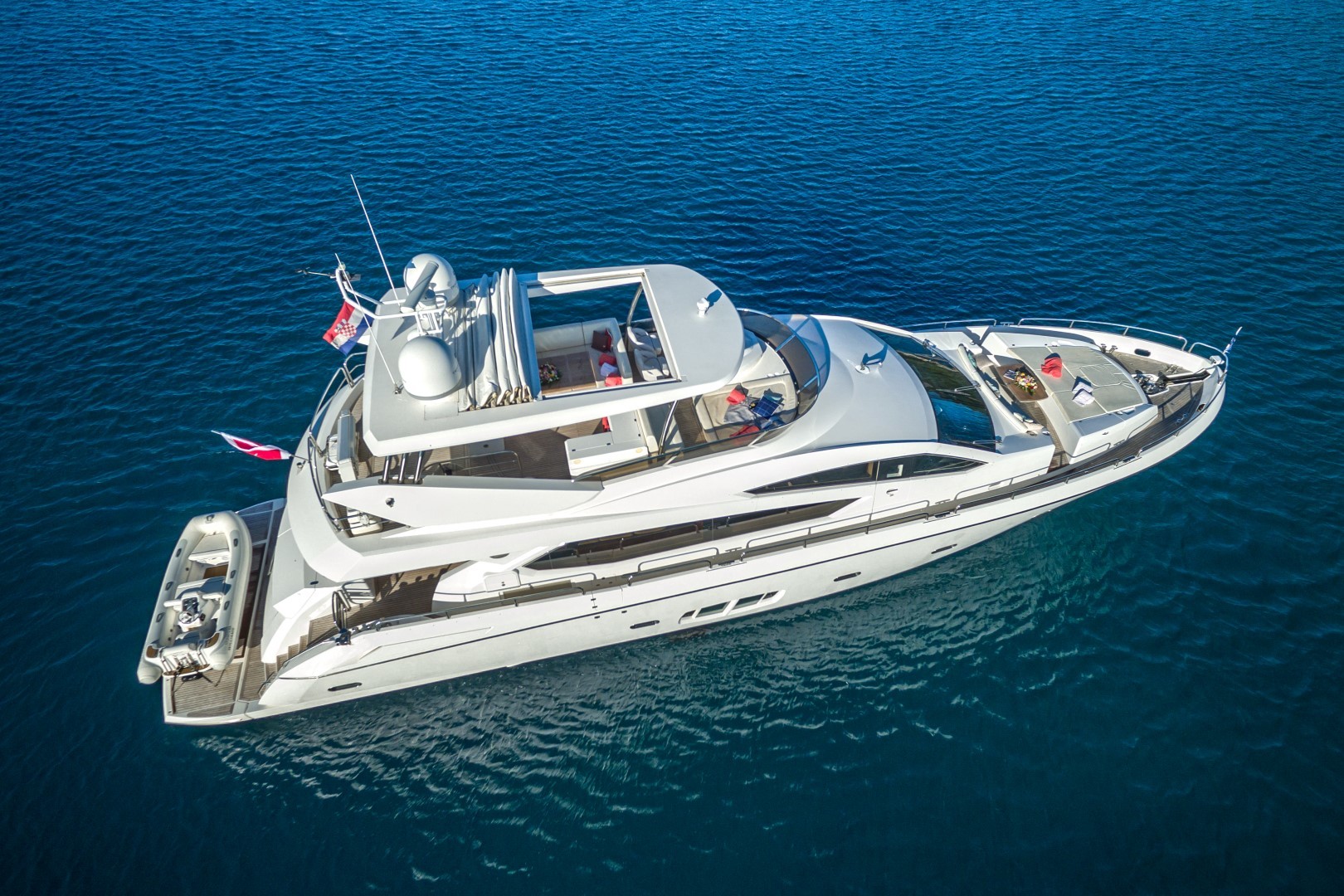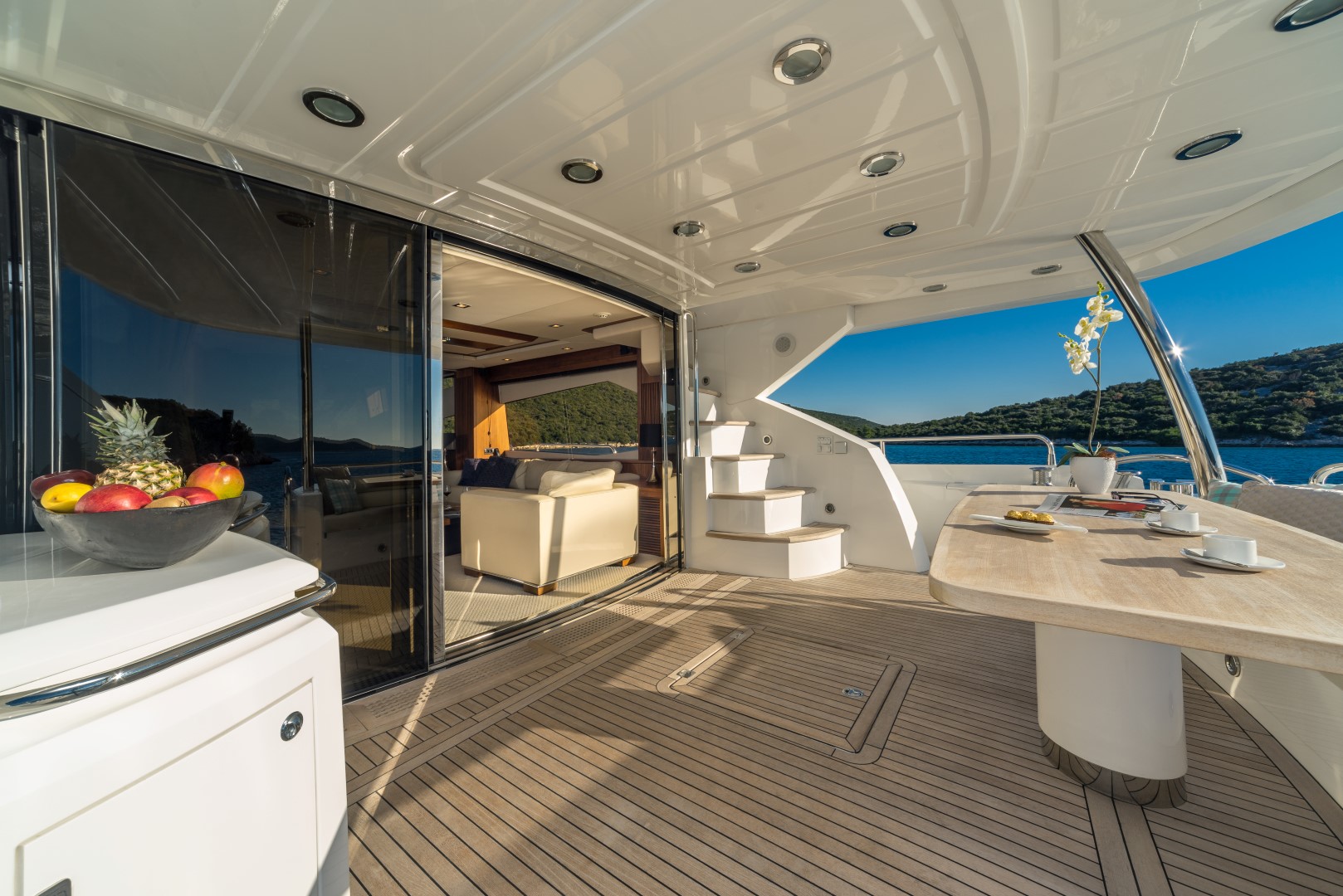 Weiterhin verfügt die Yacht über eine großzügige Flybridge und weitere zahlreiche Extras.