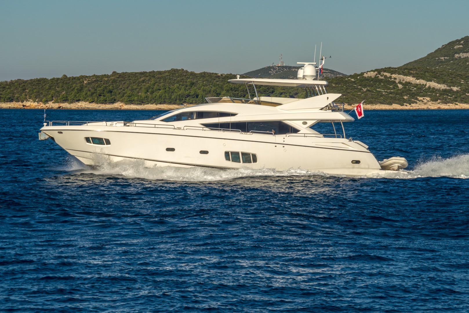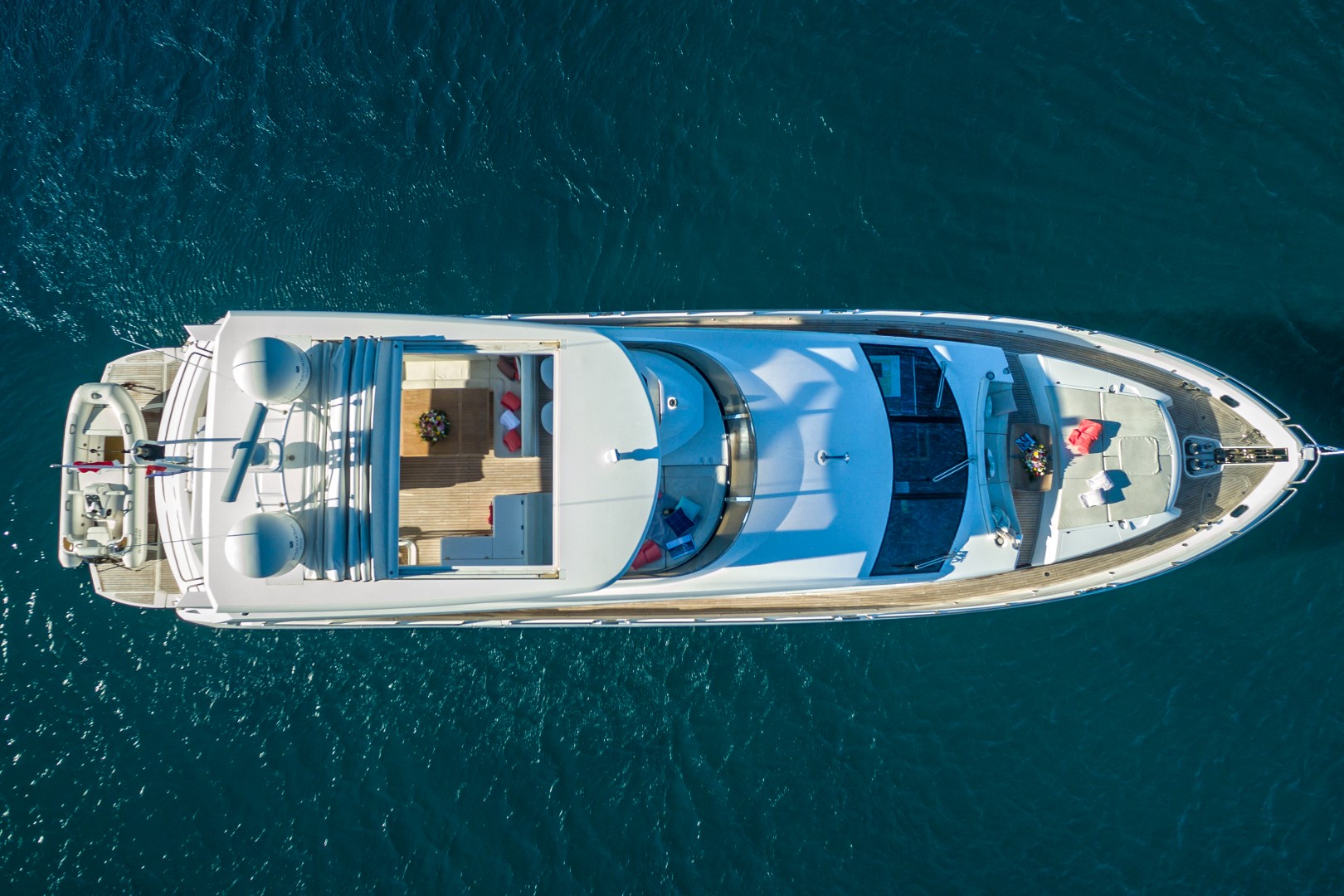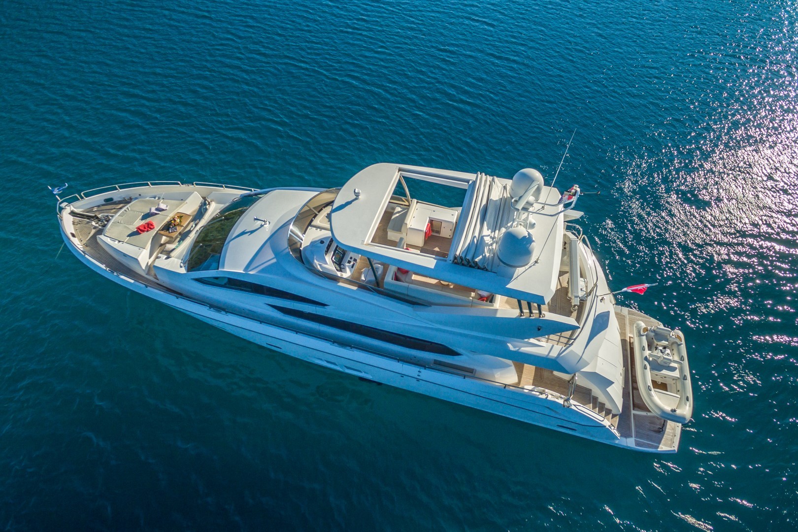 Weiterhin verfügt die Yacht über eine großzügige Flybridge und weitere zahlreiche Extras.