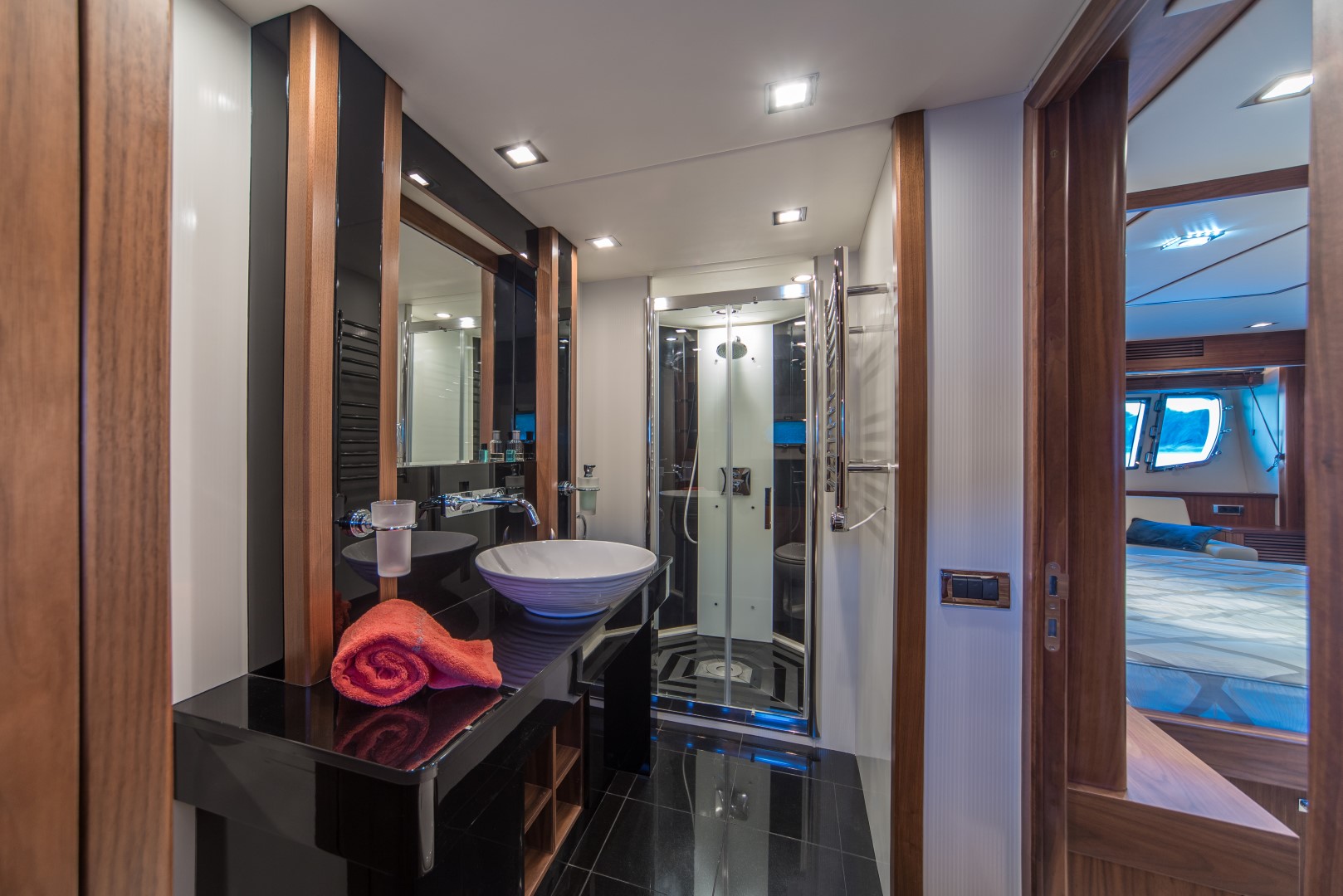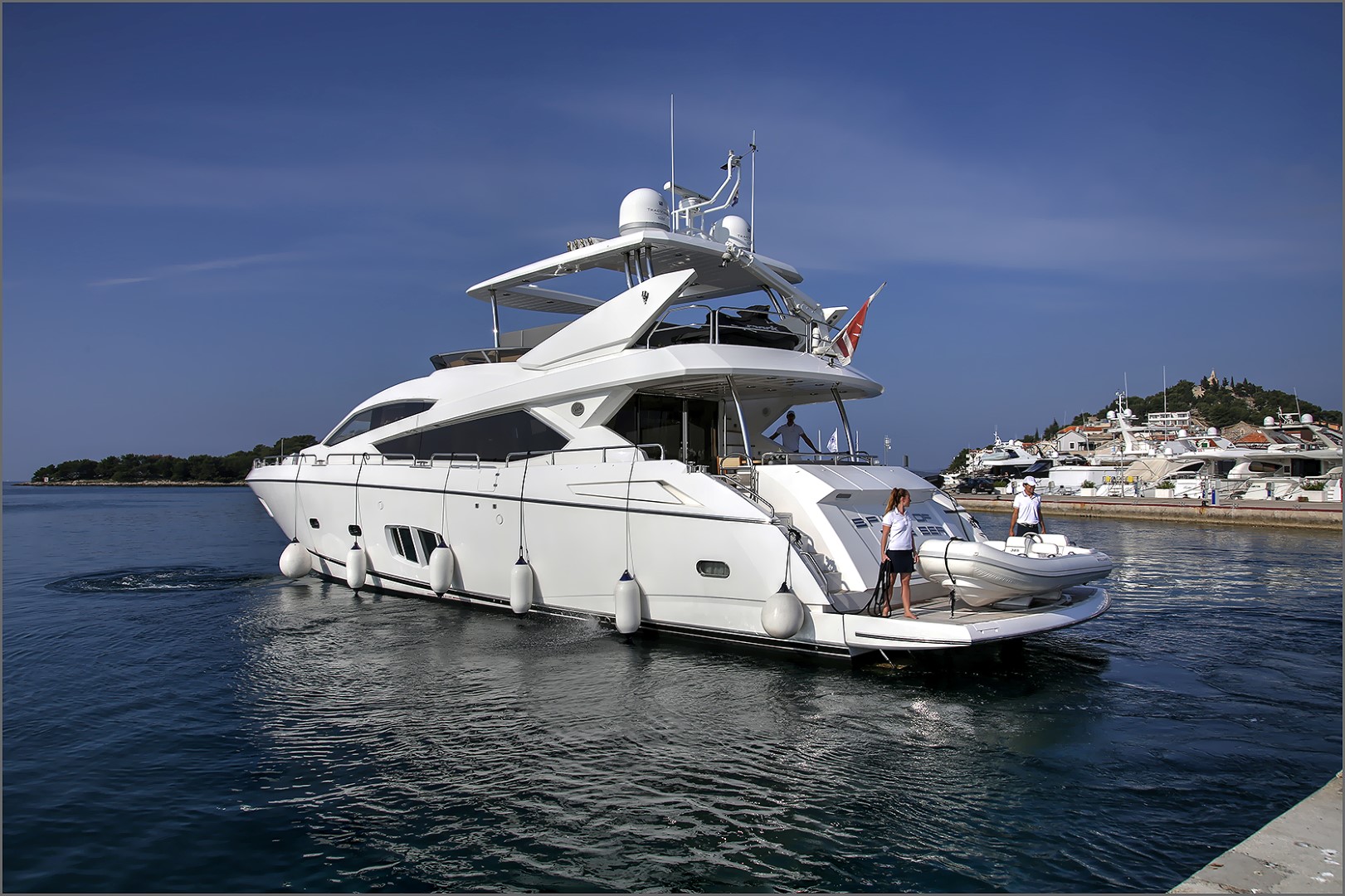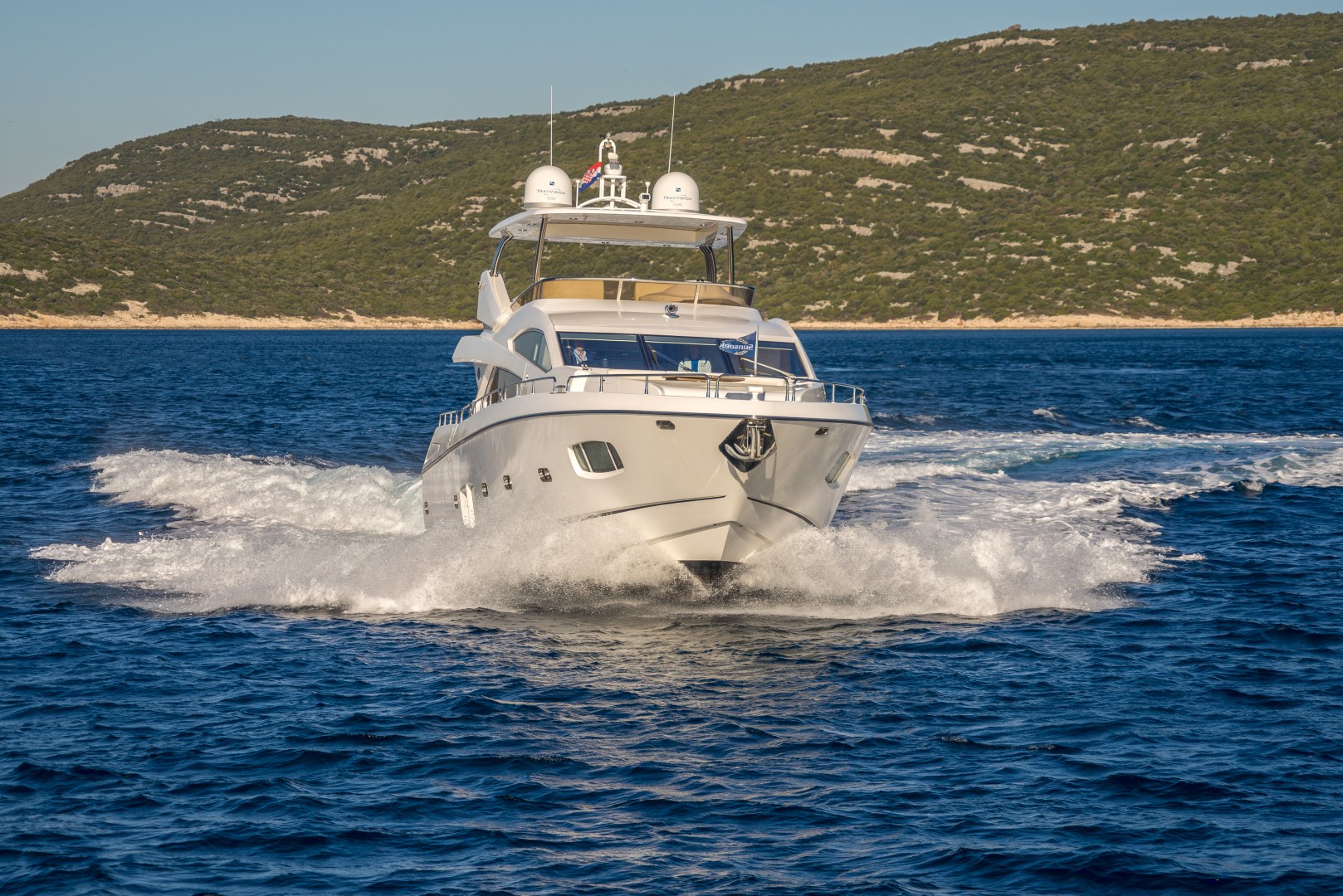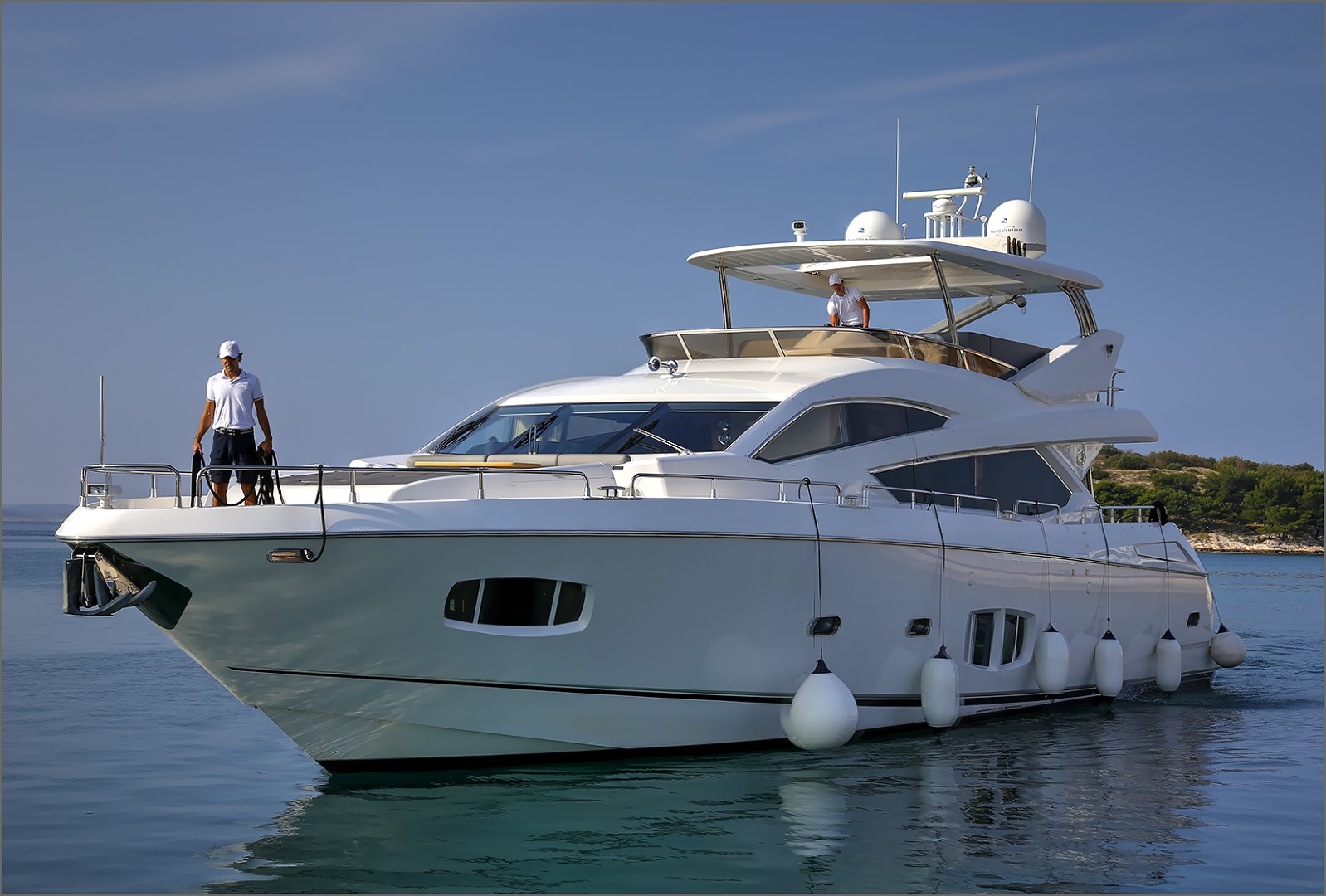 Weiterhin verfügt die Yacht über eine großzügige Flybridge und weitere zahlreiche Extras.